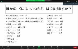 最初(さいしょ)に、学校(がっこう)はいつから始(はじ)まりますか?とみんなで話(はな)しました。