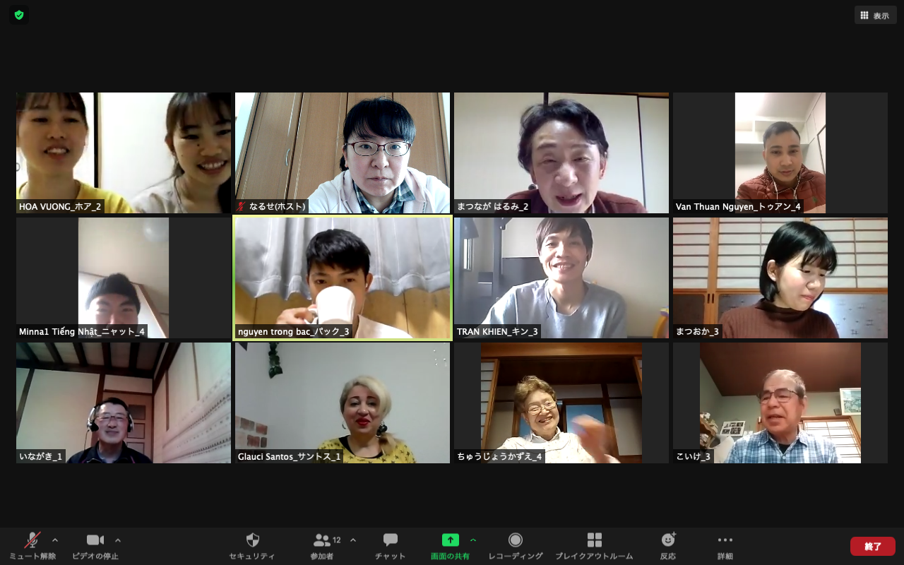 We had the online Japanese class for foreign residents in Ena on 28 March. 7 learners from Vietnam and 1 from Brazil joined and a teacher and 5 volunteers as well. Firstly we talked about when the school start in various countries. Then all participants were divided into 4 groups and enjoyed learning together. Happy to know learning was fun. The next Japanese class will be held at the classroom (face-to-face) on 11 April. Thank you for your cooperation.