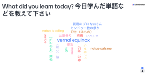 We had the thirty-fifth “Ena Language Exchange” session at 7PM on 16 October. 9 people joined, were divided into 2 groups and enjoyed talking about “Something about Autumn holidays, customs, events and festivals.” Firstly they talked in Japanese for about twenty minutes and then switched the language into English for about twenty minutes. In the end we shared the takeaways using Word Cloud and then took the group photo with big smile. One high school girl who joined for the first time seemed to enjoy.