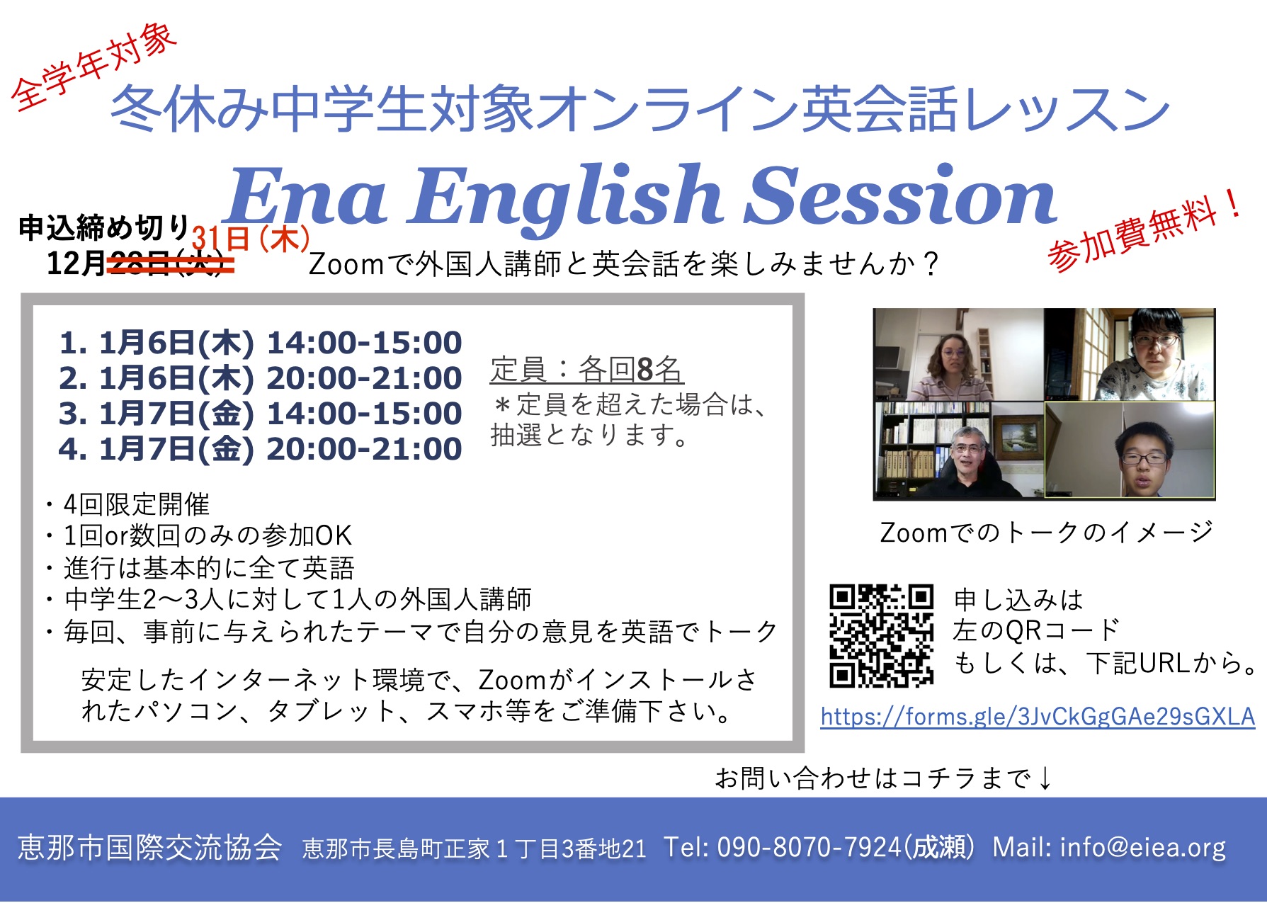 申し込み期間を31日(木)まで延長したので、中学生の皆さん、是非、お申し込み下さい!