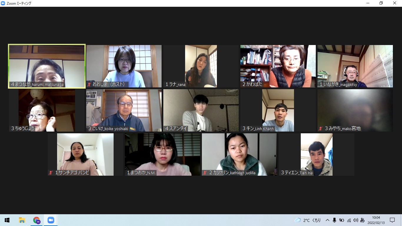 We had the online Japanese class for foreign residents in Ena on 13 February. 3 learners from Vietnam, 2 from Philippine joined and 1 from America, and a teacher and 6 volunteers as well. Firstly we talked about influence of COVID-19. Then all participants were divided into 4 groups and enjoyed learning together. Happy to know they enjoyed learning. The next Japanese class will be held online on 20 February. Thank you for your cooperation.