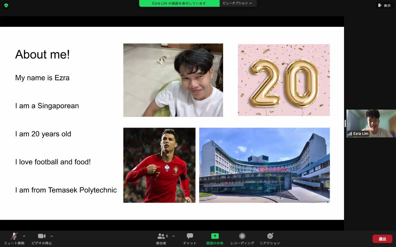 シンガポール側の参加者は、16日サミュエルさん(17才)、17日リムさん(20才)、18日カレブさん(19才)でした。