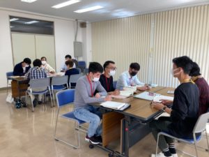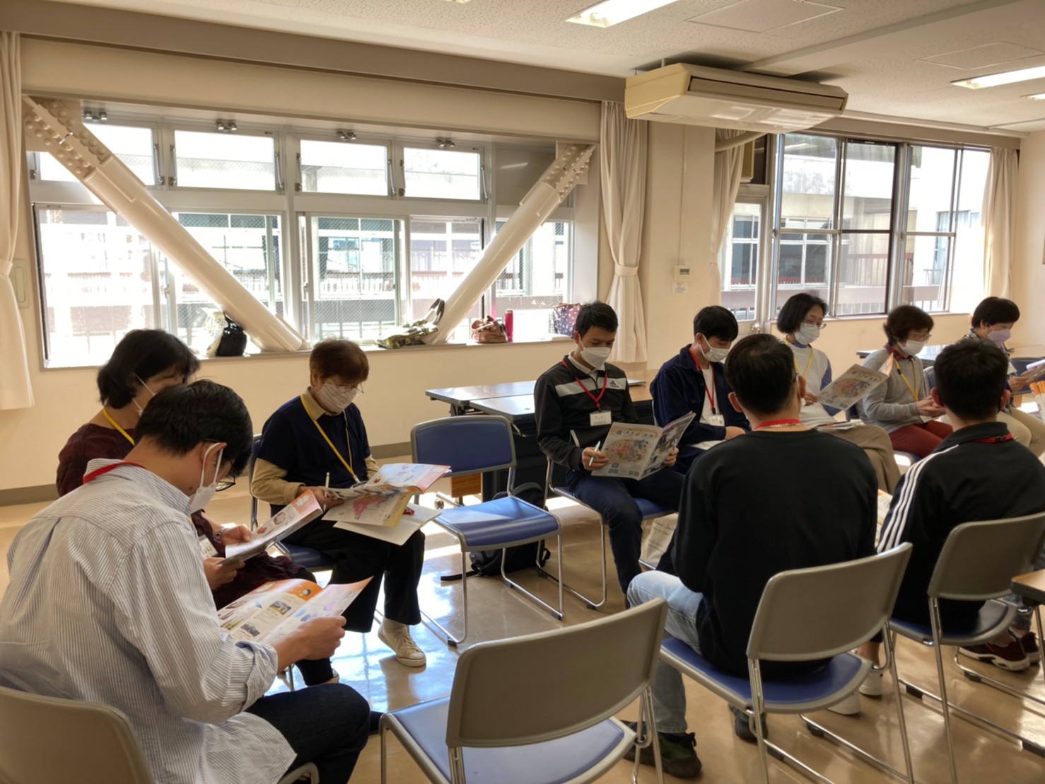 はじめに、みんなで観光(かんこう)パンフレットについて話(はな)したあと、四(よっ)つのグループに分(わ)かれて、学習(がくしゅう)しました。