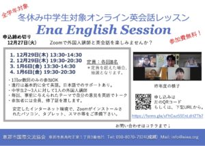 冬休み中学生対象オンライン講座 締め切り:8月9日(金)