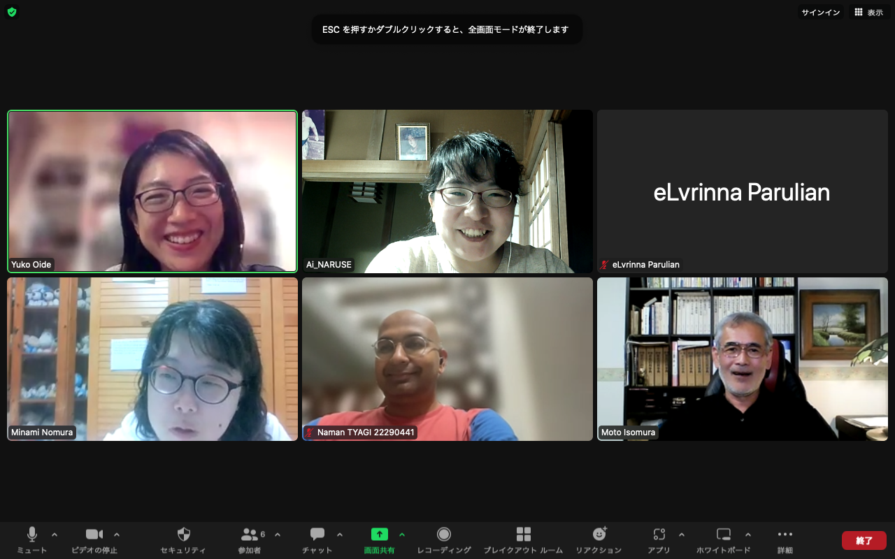 6 participants talked about the theme given in advance, “Who inspires you? Is there someone you aspire to be/want to be like?” and other topics in both English and Japanese.