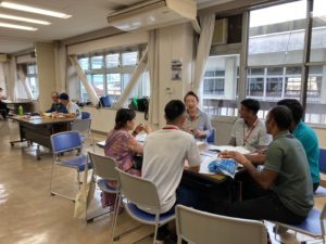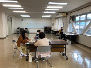 最初(さいしょ)にみんなで話(はな)し、そのあと、グループに分(わ)かれて、学習(がくしゅう)しました。