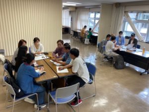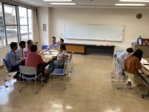 最初(さいしょ)にみんなで話(はな)し、そのあと、グループに分(わ)かれて、学習(がくしゅう)しました。