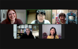 5 participants talked about summer, TV program, foreign languages and other topics in both English and Japanese. At the end of the session, we took a group photo with smiles.