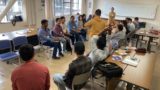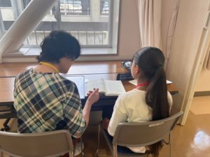 最初(さいしょ)にみんなで話(はな)し、そのあと、グループに分(わ)かれて、学習(がくしゅう)しました。