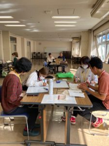 最初(さいしょ)にみんなで話(はな)し、そのあと、グループに分(わ)かれて、学習(がくしゅう)しました。