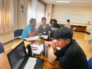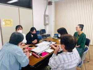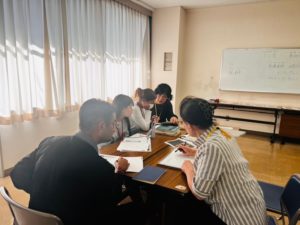最初(さいしょ)にみんなで話(はな)し、そのあと、グループに分(わ)かれて、学習(がくしゅう)しました。