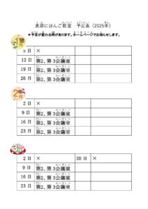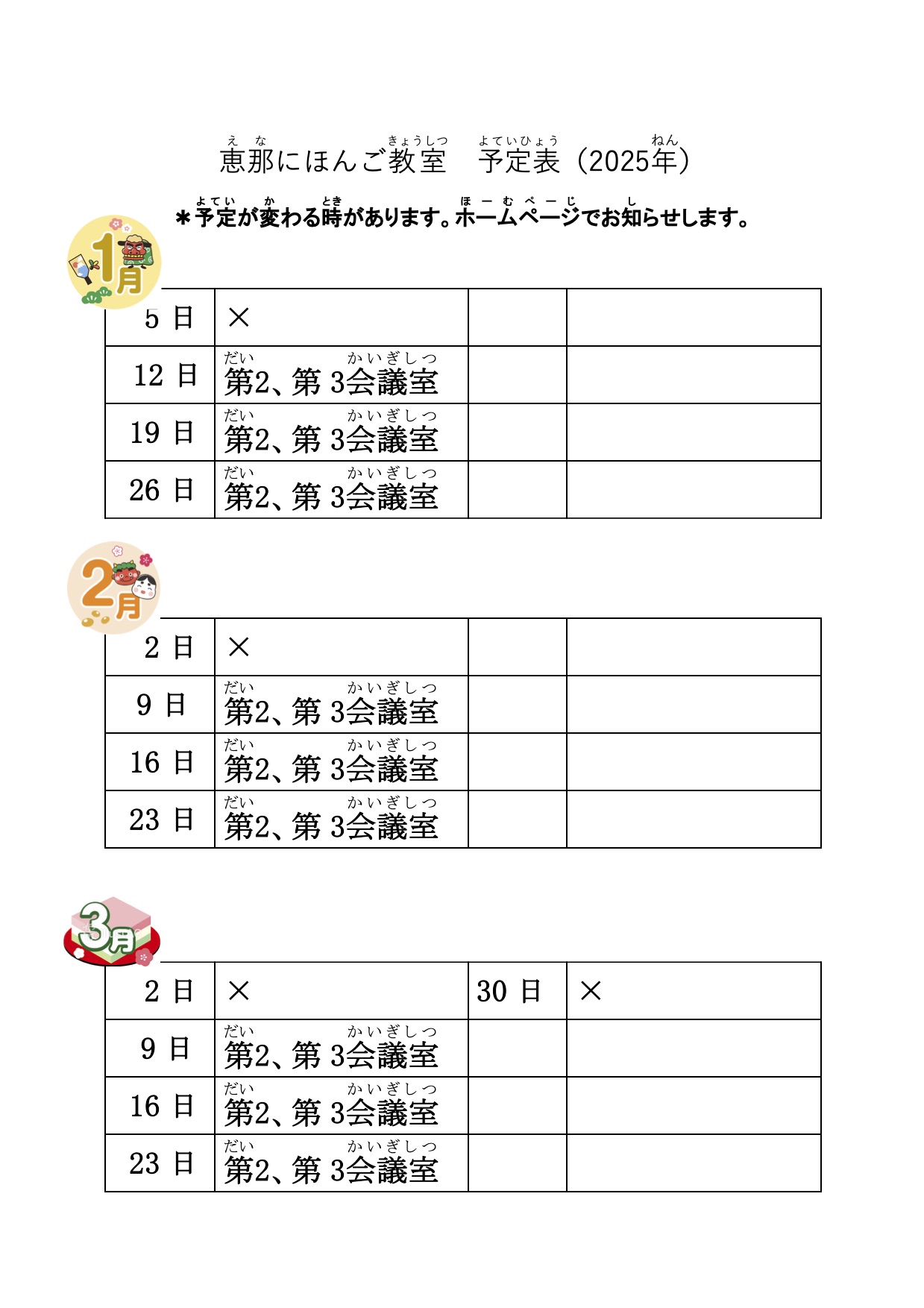にほんご教室(1月から3月)の予定