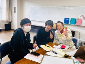最初(さいしょ)に、初(はじ)めての人(ひと)もいたので、みんなで自己(じこ)紹介(しょうかい)をしました。その後(あと)、グループに分(わ)かれて学習(がくしゅう)しました。