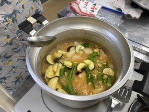 恵那農業高校ALTのキャスリーンさんを講師に迎え、11人の方と一緒にフィリピン料理の「シニガン」を作りました。