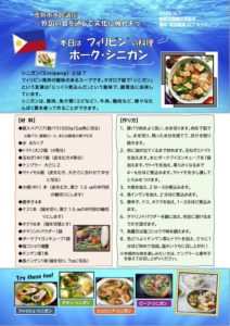 Filipino Kathkleen-san, who in an ALT of Ena Agricultural High School, was the lecturer, and together with 11 other people we cooked the Filipino dish ‘Sinigang’.