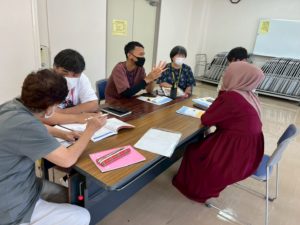 7月20日に日本語(にほんご)教室(きょうしつ)では、はじめに、みんなで来週(らいしゅう)のイベントついて話(はなし)をしました。