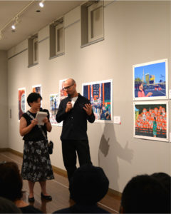 8月10日(日)にマテウシュ・コウェク氏が来日し、13時30分からコウェク氏ご本人による作品解説が行われました。東京とクラクフ市がテーマの作品が展示されており、どのように作品を制作しているのかなど、興味深いお話が聞けました。