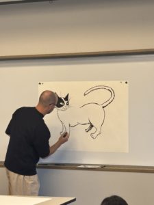 8月11日(月祝)には、ドローイングワークショップが開催されました。子どもから大人まで12名の参加者が、コウェク氏にアドバイスを受けながら、猫の絵を描きました。