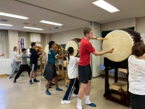 続いての太鼓体験では、全員が1曲叩けるようになりました!