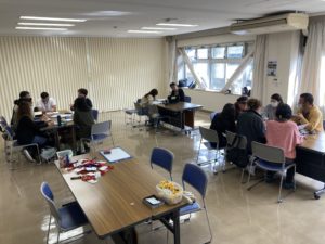 最初(さいしょ)にみんなで話(はな)した後(あと)、グループに分(わ)かれて学習(がくしゅう)しました。