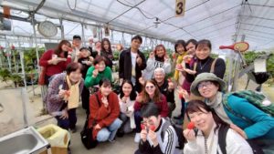 教室(きょうしつ)の後(あと)に、いちご狩(か)りに行(い)きました。みんなたくさん食(た)べました!